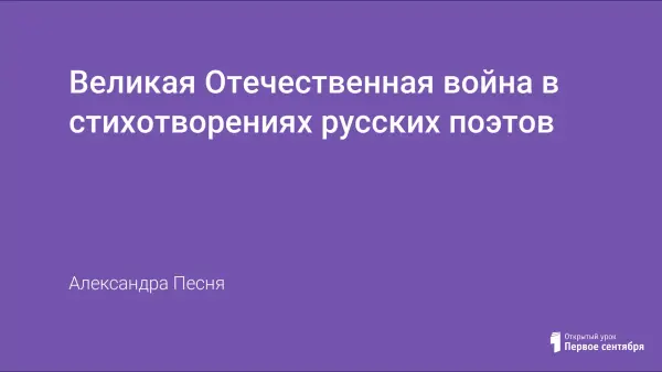 Историческая память о Великой Отечественной войне передается новым поколениям через поэзию, через песню. Остаются живыми и продолжают волновать те произведения, которые в пору их создания ложились на душу их особым настроем, своей пламенной страстью. Они выражали то самое существенное, то самое главное, чем жил народ в критический момент истории.
