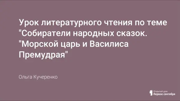 Урок литературного чтения дает представление о русских писателях-сказочниках, расширяет знания детей о волшебной сказке на основе текста сказки А.Афанасьева "Морской царь и Василиса Премудрая".