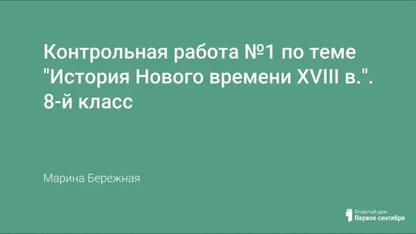 Представлена Контрольная работа (2 варианта) по теме "История Нового времени XVIII в." в 8-м классе.