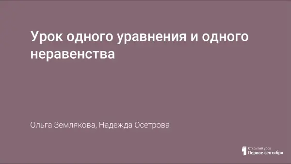Урок одного уравнения (неравенства) формирует навык исследовательской работы, развивает сообразительность, повышает интерес учащихся к работе. Такой урок лучше проводить, когда учениками усвоены необходимые понятия и разобран ряд приёмов решения уравнений и неравенств.