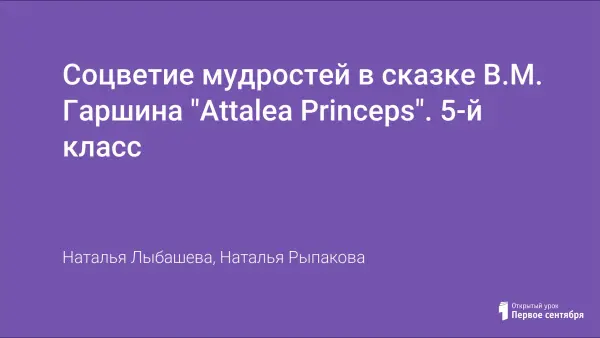 Соцветие мудростей в сказке В.М. Гаршина "Attalea Princeps". 5-й класс