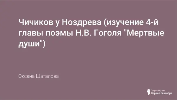 Данный урок входит в цикл уроков по поэме Н.В. Гоголя «Мёртвые души». Известно, что центральная сюжетная линия произведения Гоголя – изображение помещиков, их быта и образа жизни. Урок, посвящённый изучению темы «Чичиков у Ноздрёва», включает элементы проблемно-диалогического обучения и требует от учеников навыков текстологического анализа и навыков образного мышления.