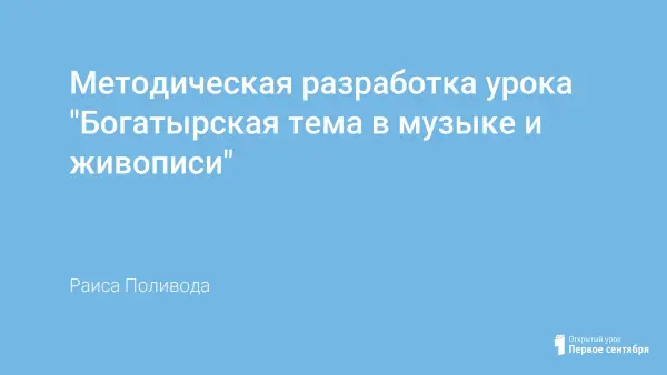 Автор показывает учащимся, как музыка и живопись разными путями идут к созданию богатырских и героических образов.