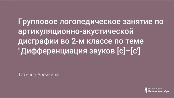 Задачи урока: вырабатывать четкую дифференциацию звуков [с] - [с'] изолированно, в слогах и словосочетаниях; сформировать умение различать звуки [с] - [с'], по акустическим и артикуляционным признакам; совершенствовать фонематическое восприятие и навыки звукового анализа и синтеза.
