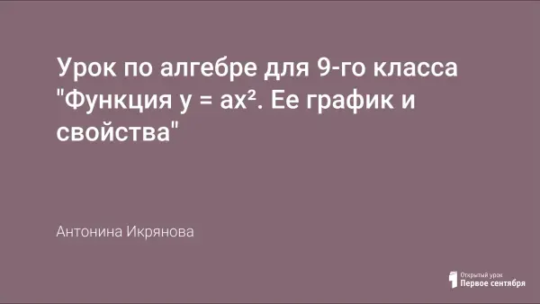 Представлен урок, включающий в себя изучение понятия и свойств квадратичной функции, отработку умения строить график функции и первичную проверку усвоенных знаний. Автор на уроке закрепляет имеющиеся у обучающихся знания о функции у=х2, расширяет их путем изучения новых видов функций у=аx2, закрепляет умения при решении практических задач.