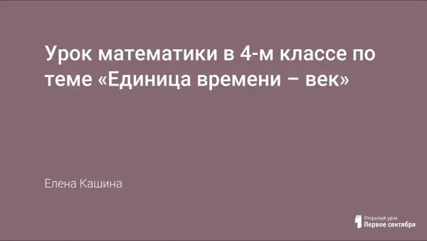 Цели урока: создать условия для ознакомления с единицей времени – веком; обобщить и систематизировать знания о единицах времени; воспитывать интерес к самостоятельной исследовательской деятельности.