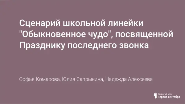 Сценарий школьной линейки "Обыкновенное чудо", посвященной Празднику последнего звонка