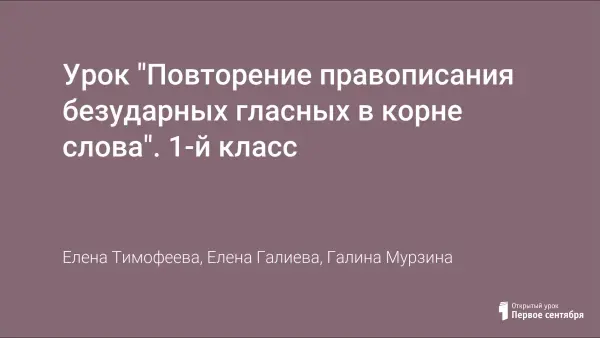 Урок "Повторение правописания безударных гласных в корне слова". 1-й класс