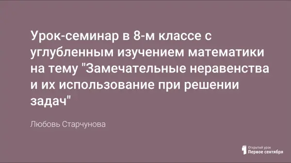 Урок дает положительный опыт в применении ранее изученных замечательных неравенств: о сумме двух взаимно обратных чисел, об оценке модуля суммы, неравенства Коши.