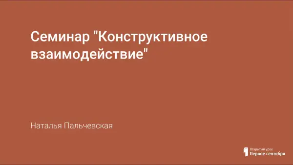 Разработка нацелена на снятие психологического напряжения педагогов, создание условий доброжелательного общения. На семинаре участники попытаются разобраться, как отношение человека к окружающим влияет на его способность к конструктивному взаимодействию с помощью теории «трансактного анализа».