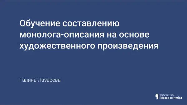 Урок представляет собой новую форму уроков развития речи – обучение составлению монолога-описания на основе художественного текста. Преимущества такого вида работы: обязательное знание текста, отбор ключевых слов из исходного текста, развитие орфографической зоркости учащихся, развитие творческих способностей детей.