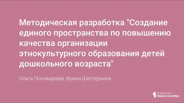Методическая разработка "Создание единого пространства по повышению качества организации этнокультурного образования детей дошкольного возраста"