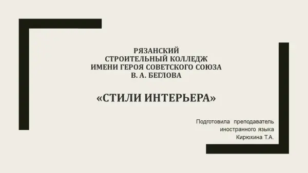 К интегрированному уроку английского языка "Стили интерьера" подготовлена презентация.