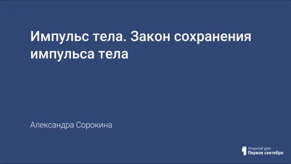 Представленный урок формирует представление об импульсе тела, законе сохранения импульса и импульсе силы. Автор раскрывает сущность закона сохранения импульса, обозначает границы применимости.