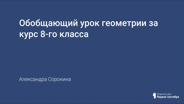Урок обобщения материала может быть использован как вводное повторение в 9-м классе. Цель: повторение теоретического материала курса геометрии 8-го класса; закрепление решения простейших задач по теории курса геометрии 8-го класса.