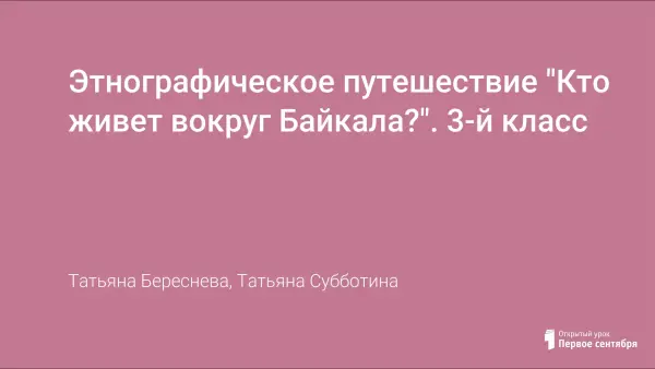 Этнографическое путешествие "Кто живет вокруг Байкала?". 3-й класс