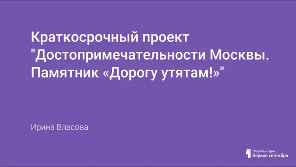 Данный творческий проект по созданию игрового макета из 4-х секторов будет полезен воспитателям, работающим с детьми дошкольного возраста. Проект знакомит детей с достопримечательностью Москвы – памятником «Дорогу утятам!», способствует расширению представлений о жизни уток, развивает навыки рисования, лепки, объемной аппликации.