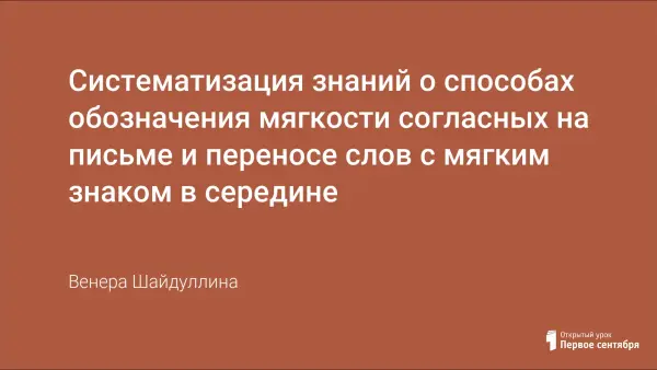 Урок русского языка во 2-м классе на систематизацию знаний о способах обозначения мягкости согласных на письме и переносе слов с мягким знаком в середине. Цели урока: развивать умение обозначать мягкость согласных на письме, перенос слов с мягким знаком в середине, воспитывать аккуратность.