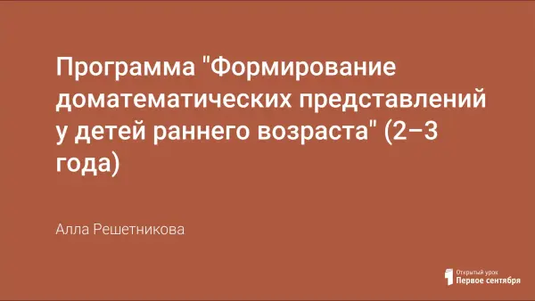 Программа адресована воспитателям, работающим с детьми раннего дошкольного возраста. Автор ставит своей задачей помочь практическим работникам в формировании сенсорно-математических представлений у детей 2–3 лет В программе представлены цели, задачи, содержание, методы и приемы работы. Система дидактических игр и упражнений, сгруппированных с учетом возрастных особенностей и закономерностей развития мышления детей раннего возраста.