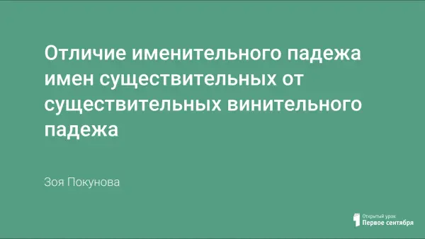 Учащиеся знакомятся с признаками отличия именительного падежа от винительного падежа имен существительных. Формируется умение правильно употреблять существительные в именительном и в винительном падежах.