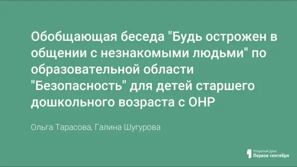Обобщающая беседа "Будь острожен в общении с незнакомыми людьми" по образовательной области "Безопасность" для детей старшего дошкольного возраста с ОНР