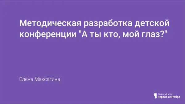 В статье предложена методическая разработка детской конференции, как итог комплексной работы над исследовательско-творческим проектом «А ты кто, мой глаз?», реализованный в подготовительной группе детей с кратковременным пребыванием.