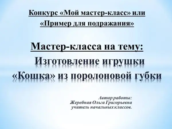 Мастер-класс по изготовлению игрушки из поролоновой губки будет полезен учителям начальной школы, педагогам дополнительного образования, родителям и всем тем, кому интересно работать с бросовым материалом. Данный материал можно использовать на уроках изобразительного искусства и технологии, на занятиях внеурочной деятельности с детьми от 6 лет и старше. Цель мастер-класса: познакомить детей с бросовым материалом, изучить историю губок, познакомить с техникой создания игрушек из поролоновых губок изготовление своих вариантов игрушек.