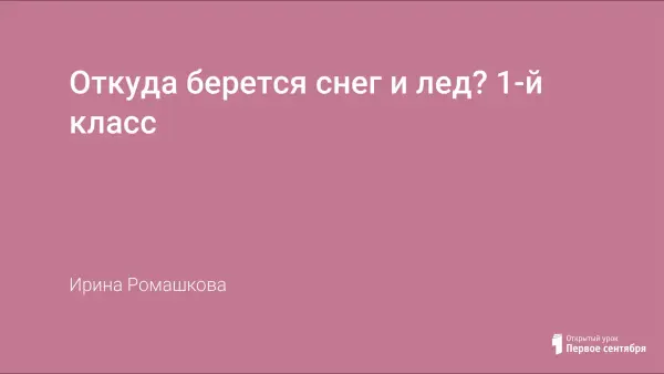 Учащиеся знакомятся со свойствами льда и снега. Проводится обучение практическому исследованию природных объектов, формируется представление о том, что снег и лёд – это замерзшая вода.
