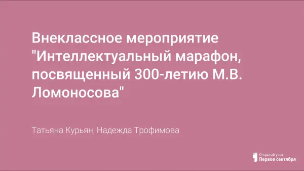 Цель проведения интеллектуальных игр – привлечение к участию как можно большего числа школьников. В качестве примера предлагается разработка интеллектуального марафона, посвященного 300-летию со дня рождения М.В. Ломоносова.