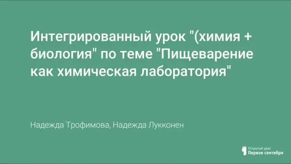 Интегрированный урок "(химия + биология" по теме "Пищеварение как химическая лаборатория"