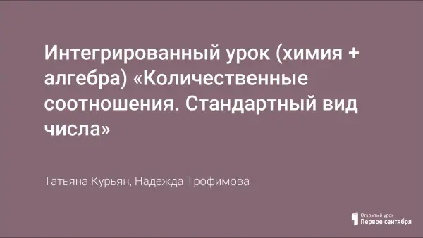 Интегрированный урок (химия + алгебра) «Количественные соотношения. Стандартный вид числа»