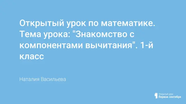 Цель урока: создание педагогических условий для ознакомления учащихся с названиями компонентов при вычитании, читать выражения, используя эти термины.