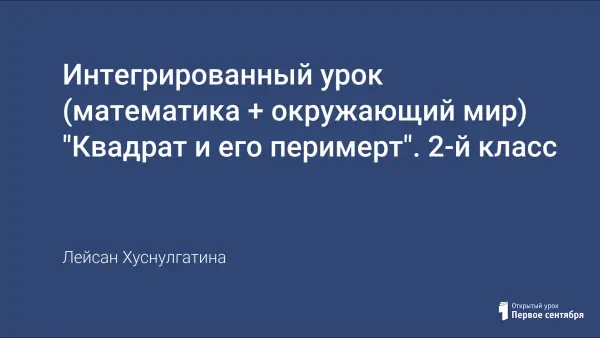 В начальной школе на изучение ПДД отведено небольшое количество часов, поэтому одним из вариантов обучения ПДД выбираются интегрированные уроки окружающего мира (ПДД) с другими предметами. Учащиеся знакомятся со свойствами квадрата, учатся находить периметр квадрата; закрепляют вычислительные навыки.