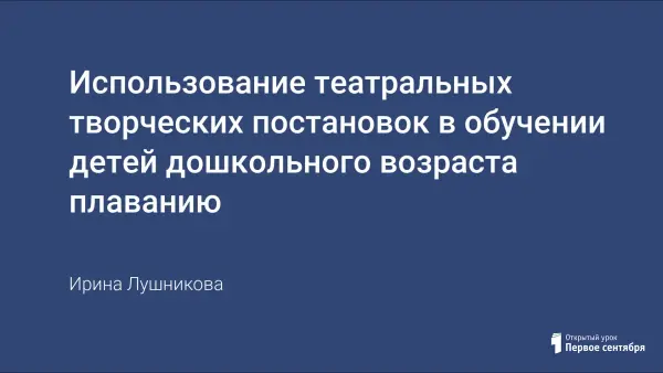 В нашем ДОУ одной из годовых задач является развитие у детей творческих способностей посредством театральных технологий. Поэтому на занятиях по плаванию мы применяем различные методы и приёмы, направленные на решение данной задачи. Одним из методов является проведение занятия по плаванию в виде инсценировки сказок. В сказочных постановках участвуют все дети группы. Это очень эффективная мотивация для привлечения всех ребят к занятиям по обучению плаванию.