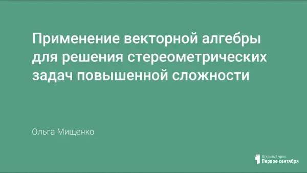 В данной работе изложены методы решения задач по стереометрии с помощью элементов векторной алгебры. Это задачи на вычисление отношений, в которых секущая плоскость делит ребра многогранника, вычисление расстояний от точки до прямой и плоскости, определение расстояния и угла между скрещивающимися прямыми, задачи на комбинацию многогранников.