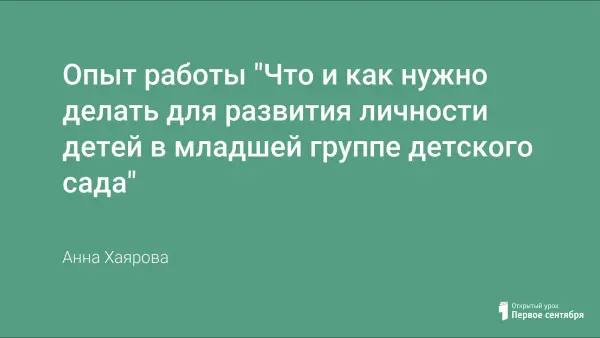 Опыт работы "Что и как нужно делать для развития личности детей в младшей группе детского сада"
