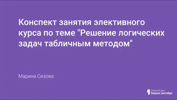 В статье представлена разработка занятия элективного курса в 6-м классе, на котором учащиеся знакомятся с основной идеей метода, учатся решать логические задачи с использованием специально подготовленных листов на печатной основе. Данное занятие является одним из цикла занятий «Методы решения логических задач».
