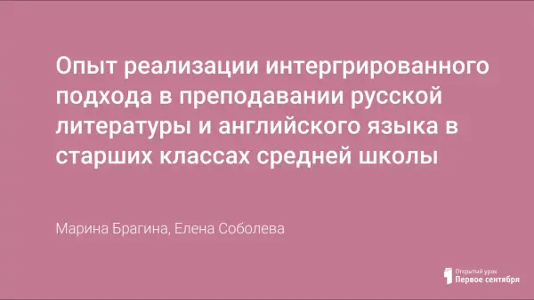 Опыт реализации интергрированного подхода в преподавании русской литературы и английского языка в старших классах средней школы