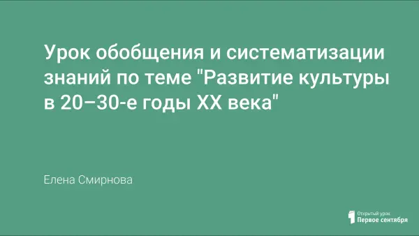 Урок обобщения и систематизации знаний по теме "Развитие культуры в 20–30-е годы XX века"