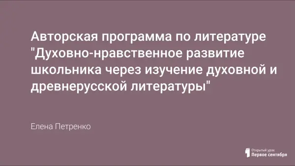 Предполагаемая программа – один из возможных вариантов изучения духовной и древнерусской литературы в средней школе, работающей по программе для общеобразовательных школ под редакцией А.Г. Кутузова. Данную программу я использую как дополнительный материал к уроку, успешно внедряю вот уже третий год.