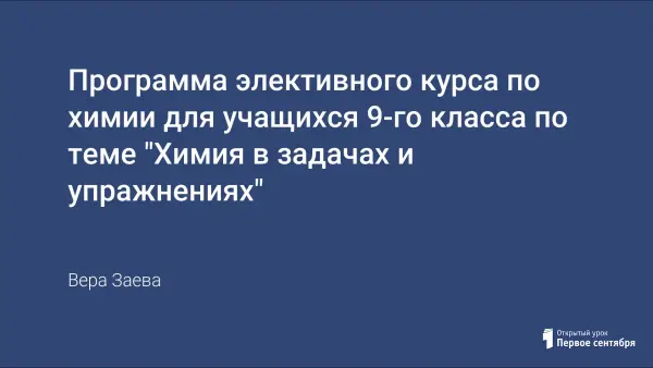 Предлагаемый курс имеет прежде всего практическую направленность, так как предназначается не столько для формирования новых химических знаний, сколько для развития умений и навыков решения расчетных задач различных типов. Данный курс рассчитан на учащихся 9-х классов и связан с базовым курсом химии основной школы, а также с курсами математики (составление пропорций, алгебраических уравнений) и физики (газовые законы).