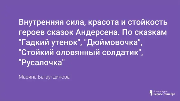 На уроке внеклассного чтения в 5-м классе ученики с удовольствием обсуждают сказки Г.Х. Андерсена, заранее готовят иллюстрации к произведениям. Урок способствует привитию любви к чтению, развивает умение работать с текстом художественного произведения; учит давать характеристику литературным героям, оценивая их поступки; воспитывает вдумчивого читателя; обогащает речь учащихся.