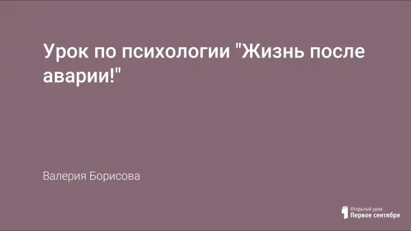 Содержание урока направлено на профилактику дорожно-транспортных происшествий, психологическое описание посттравматического состояния, информированность учащихся об основных причинах ДТП и возможных способах борьбы со стрессом. Материал урока составлен таким образом, чтобы каждый обучающийся мог активно участвовать в ходе всего урока. Требуется дополнительная подготовительная работа с 3–4 учащимися для оформления сопровождающей презентации.