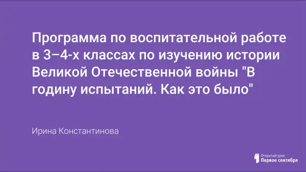 Представленная программа рассчитана на учебный год. В рамках программы учащиеся вовлекаются в проектную деятельность. Программа призвана познакомить учащихся с историческими событиями 1939–1945 годов, сформировать представление учащихся о Великой Отечественной войне и ее героях.