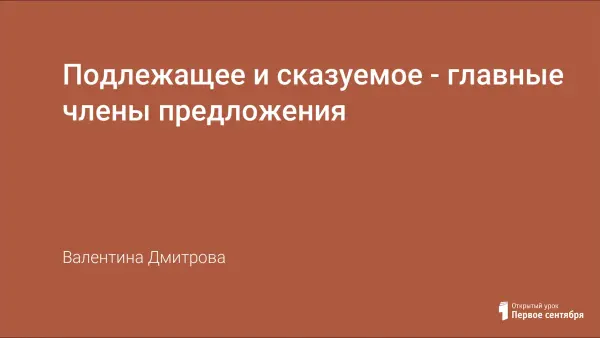Цель урока - развитие умения находить подлежащее и сказуемое как основу предложения, правильно ставить к ним вопросы и правильно подчеркивать. Урок проходит в игровой форме. Дети разбирают первую строку стихотворения «Одуванчик», а потом знакомятся со словарным словом – театр.
