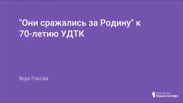 Цели мероприятия: актуализация знаний учащихся по истории формирования УТДК и его вкладе в победу над фашизмом; показать боевой путь УТДК; продолжить расширять кругозор учащихся по истории Урала; способствовать формированию уважительного отношения к родной стране, к ее истории и трудовому подвигу народа.
