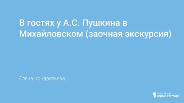 Ученик совершат заочную экскурсию в дом-музей А.С. Пушкина в селе Михайловском, через визуальное восприятие представить обстановку, в которой Пушкин жил и занимался творчеством. Цель: воспитание уважительного отношения культурному наследию нашей страны.