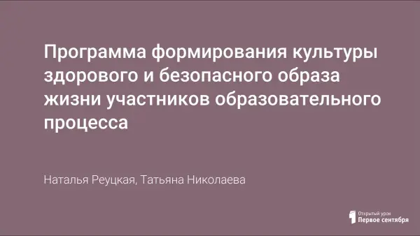 Программа формирования культуры здорового и безопасного образа жизни участников образовательного процесса