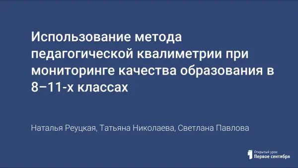 Проблема качества образования и его оценки приобрела сегодня чрезвычайную остроту. Статья содержит результаты апробации программы, основанной на квалиметрическом подходе в обучении учащихся. Приведен анализ контрольной работы в электронном виде.