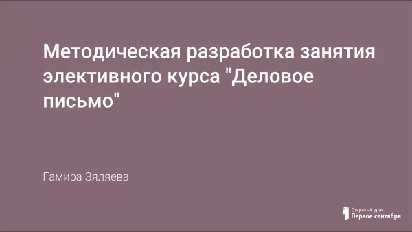 Методическая разработка занятия элективного курса "Деловое письмо"